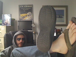 For much of my teenage, young adult and now creeping middle-age life, my bare feet have been a rare site, indeed, with notable exceptions being in the shower and on the beach. I'm not 100% sure of the reason for this, exactly - while they definitely don't fall into the stunningly beautiful category, I don't think my feet are hideously embarrassing either (photographic evidence to the right - my apologies to my photographic memory readers who will now be stuck with this image seared into their brain for all time).