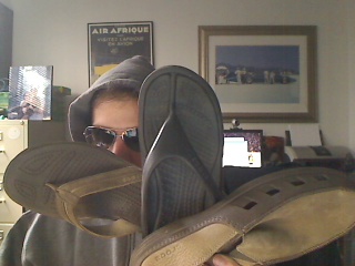 For much of my teenage, young adult and now creeping middle-age life, my bare feet have been a rare site, indeed, with notable exceptions being in the shower and on the beach. I'm not 100% sure of the reason for this, exactly - while they definitely don't fall into the stunningly beautiful category, I don't think my feet are hideously embarrassing either (photographic evidence to the right - my apologies to my photographic memory readers who will now be stuck with this image seared into their brain for all time).