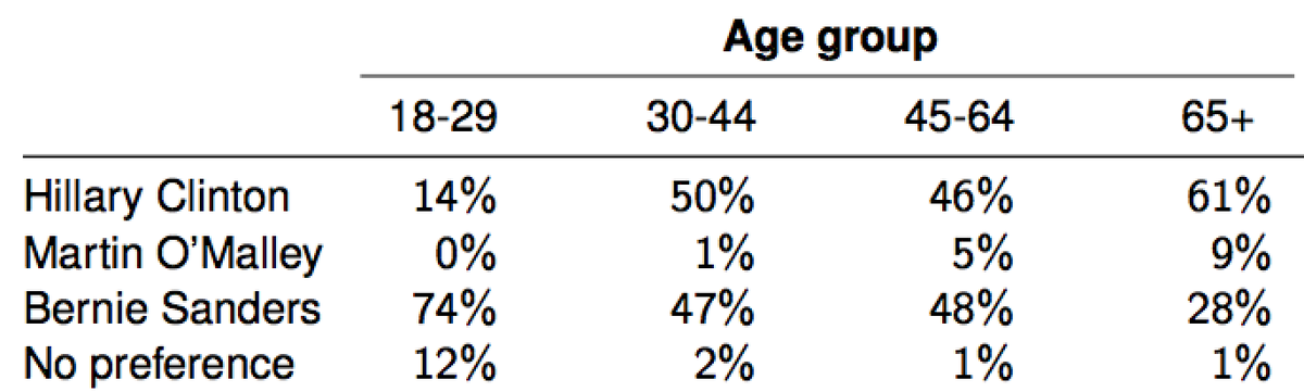 Odd, you'd have thought Bernie would do better than 28% of the Simon and Garfunkle demographic...