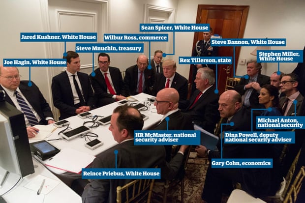 Image of the president and his staff receiving a briefing about the progress of strikes on Syria tells a thousand words....(of course, they have some words to add, as well as some tweets)