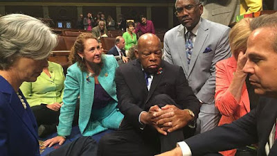 Within seconds after John Lewis announced the sit-in, Twitter and Facebook exploded. News spread that something big was happening on the House floor (literally), and for one brief shining moment even Donald Trump couldn't draw media attention away from the disobedient but mostly civil Democrats who had finally had enough.